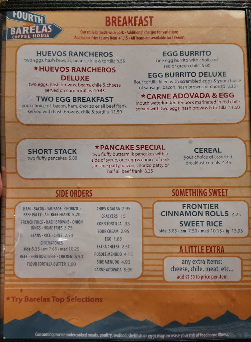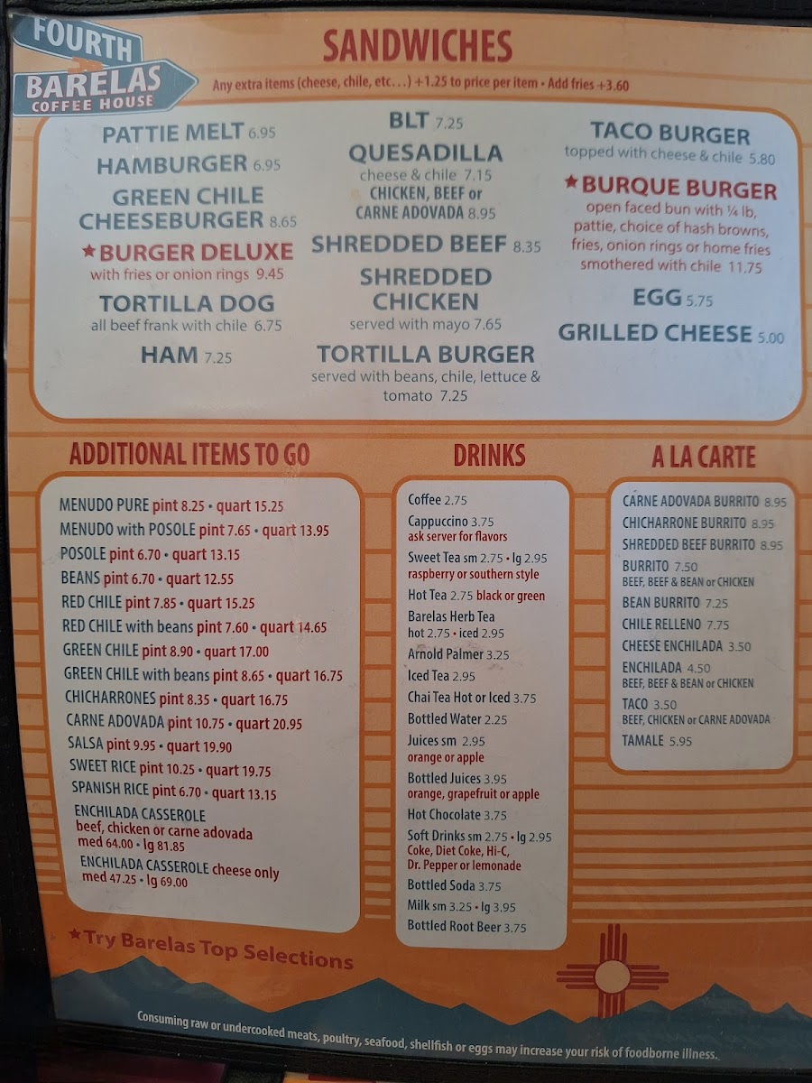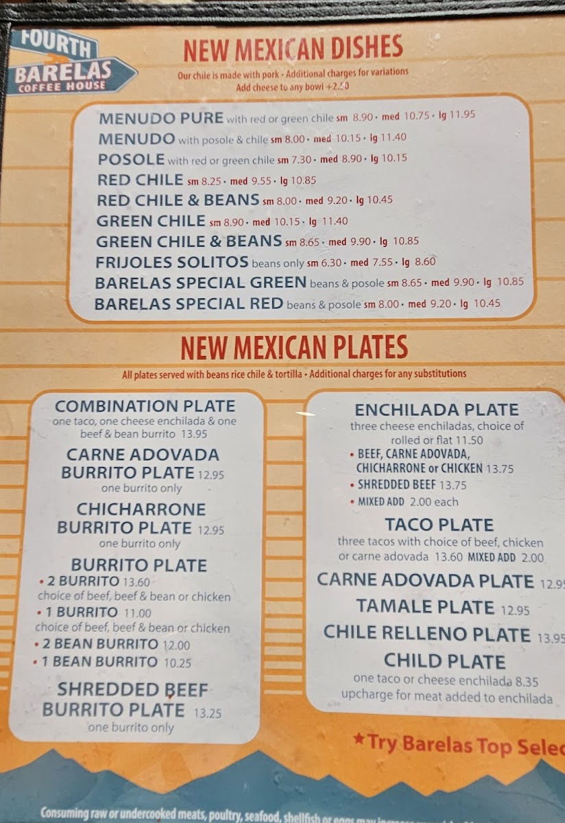Barelas Coffee House Menu